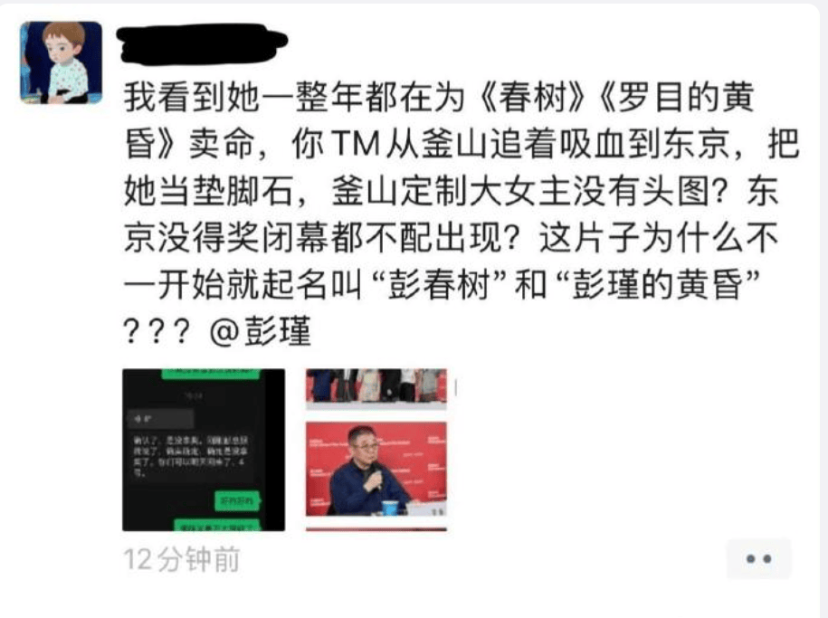 还有一个细节,经纪人在和剧组方面沟通过程中,强调是“彭总说的吗?”给人的感觉是白百何和彭瑾当时已有嫌隙,“不被邀请参加闭幕式”只是矛盾爆发的导火索罢了,而两个人的嫌隙发生于之前白百何自己提到的釜山电影节。