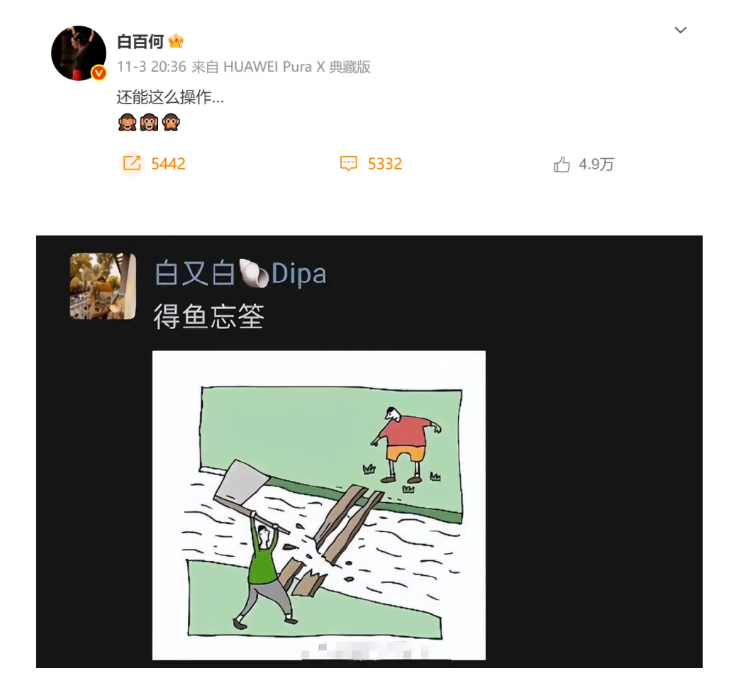 资本和潜规则这两个词向来能戳中网友们的敏感神经,这则捕风捉影的爆料迅速引爆舆论,之后白百何补了两条朋友圈,暗示剧组得鱼忘筌、过河拆桥,加上所谓好友爆料,将矛头指向制片人彭瑾,等于挑明正式宣战。